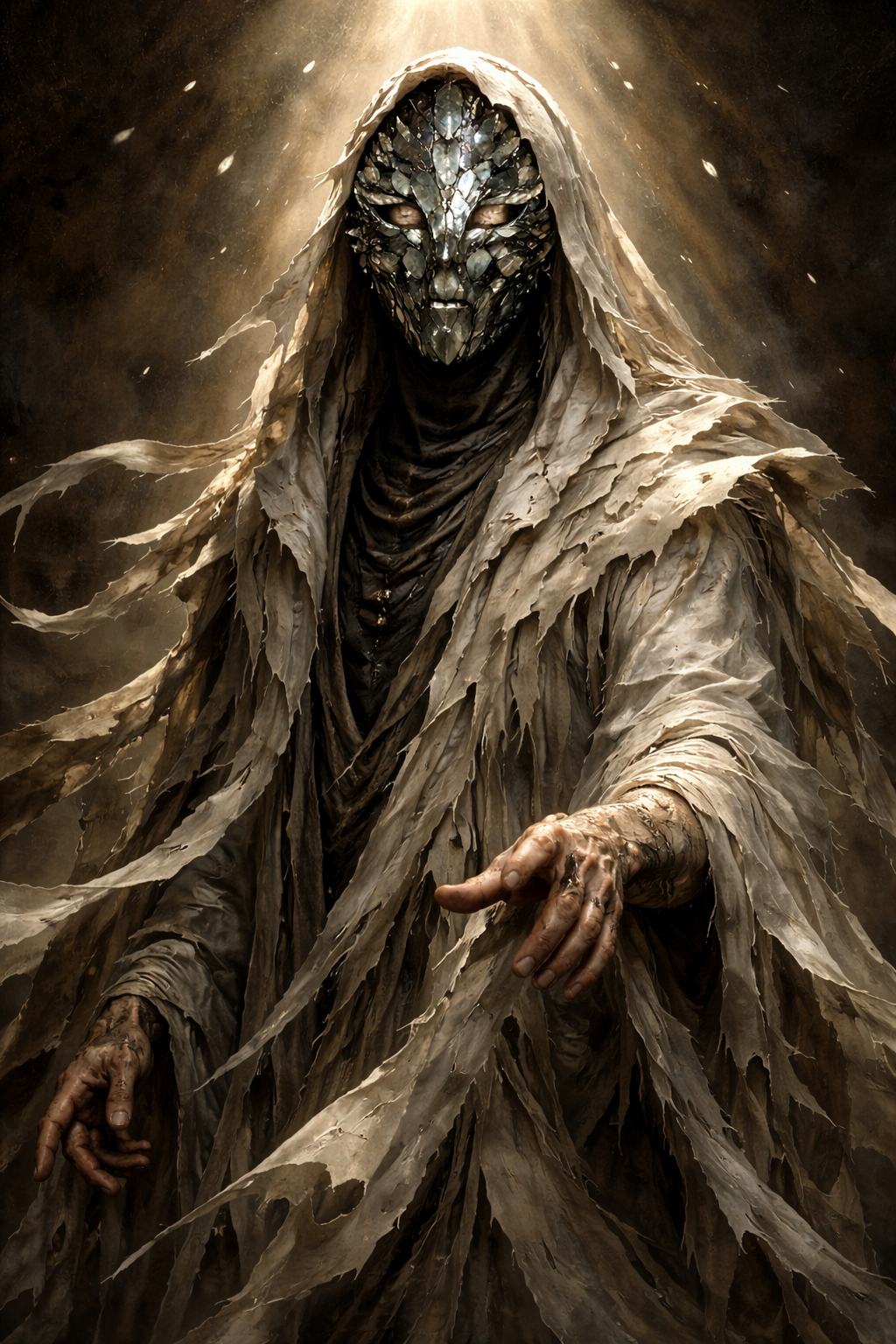 - Lange, fließende Gewänder in gebrochenem Weiß