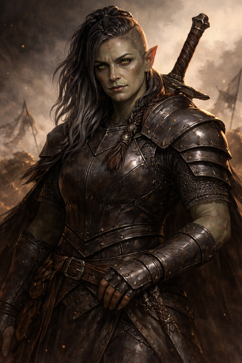 | Augen | Bernsteingelb, durchdringend, orkisches Erbe |